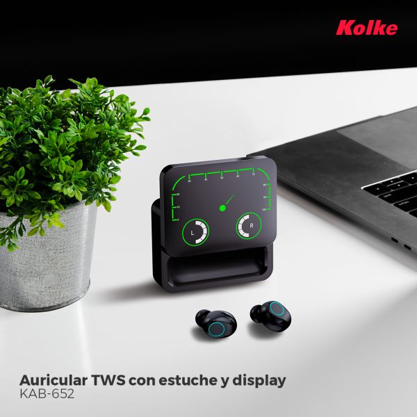 AURICULAR TWS CON ESTUCHE Y DISPLAY KAB-652 NEGRO