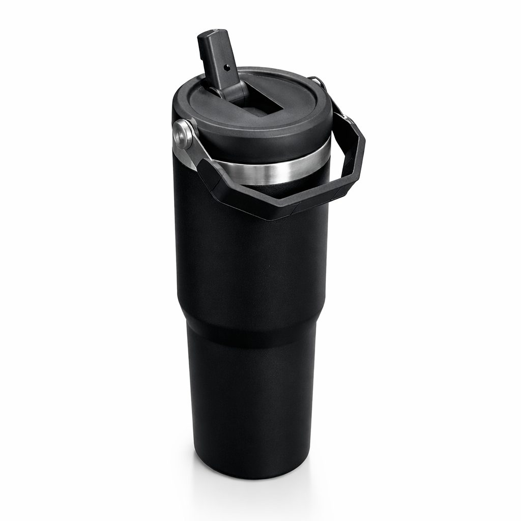 Disfrutá tus bebidas favoritas a la temperatura ideal con el Mug Térmico con Pico 900ml en acero inoxidable color negro. Su diseño moderno y elegante lo convierte en el compañero perfecto para la oficina, el gimnasio, viajes o el día a día.