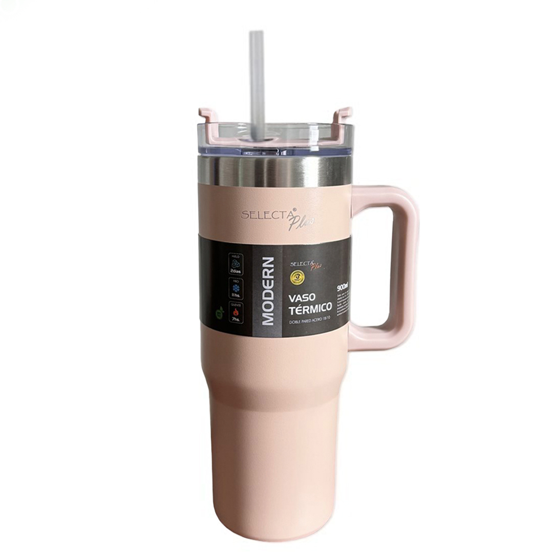 Lleva tu bebida favorita siempre contigo con el elegante Mug Travel Térmico Rosa Selecta. Con su diseño moderno y funcional, este vaso de 900 ml es ideal para acompañarte en tus aventuras diarias.